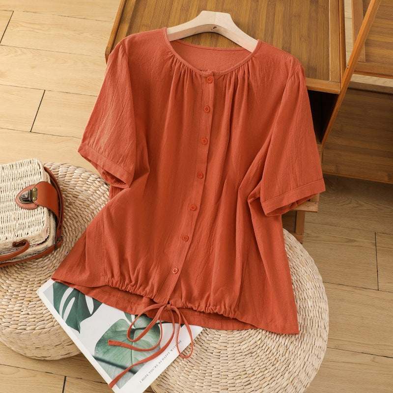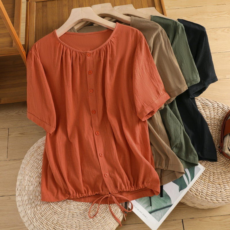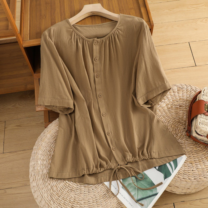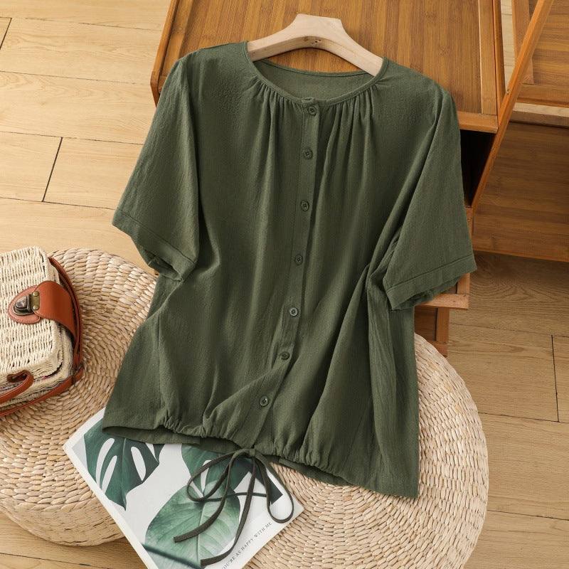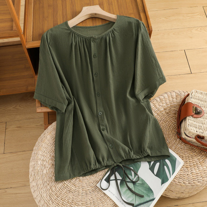 Women’s Linen Drawstring Crew Neck Swing Top